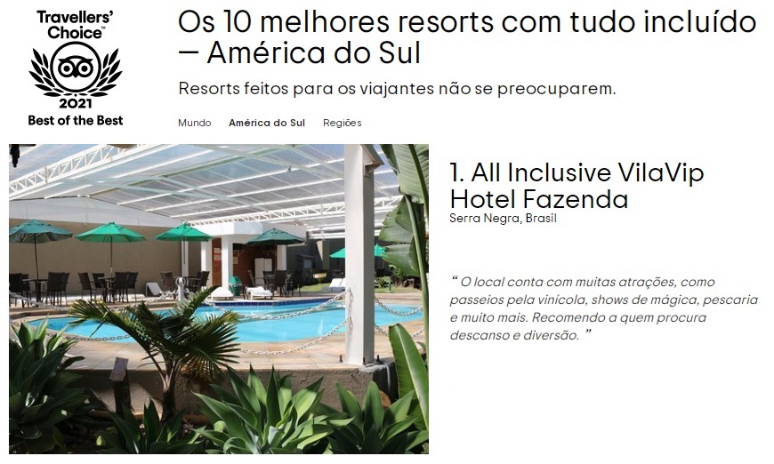 1° Melhor Hotel All Inclusive do Brasil e da América do Sul